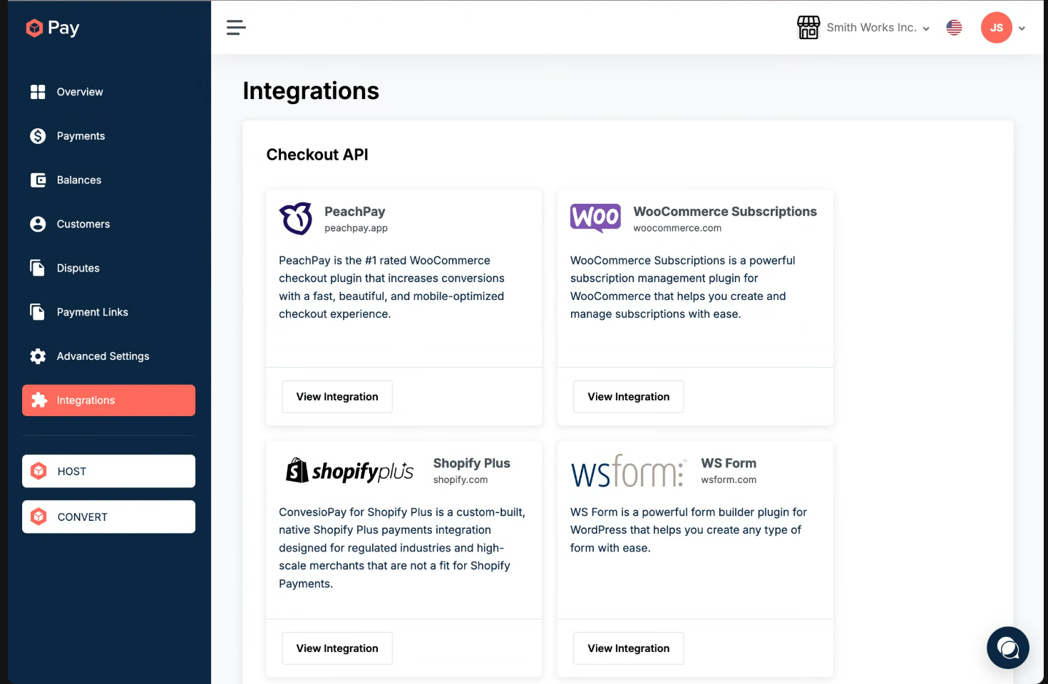 - All setup and configuration is completed outside the ConvesioPay dashboard.